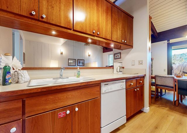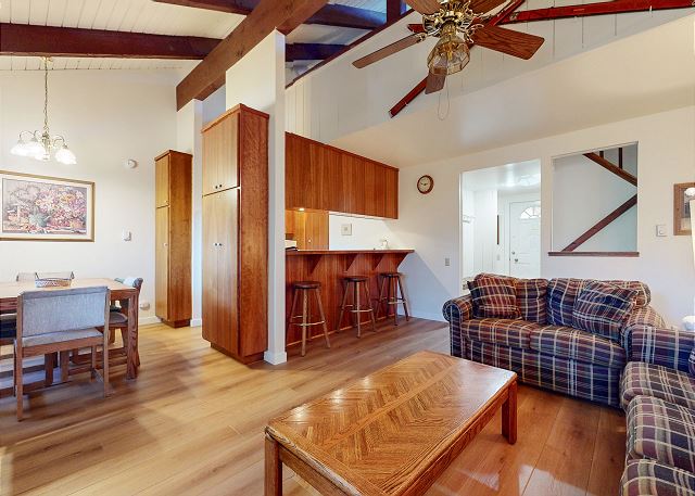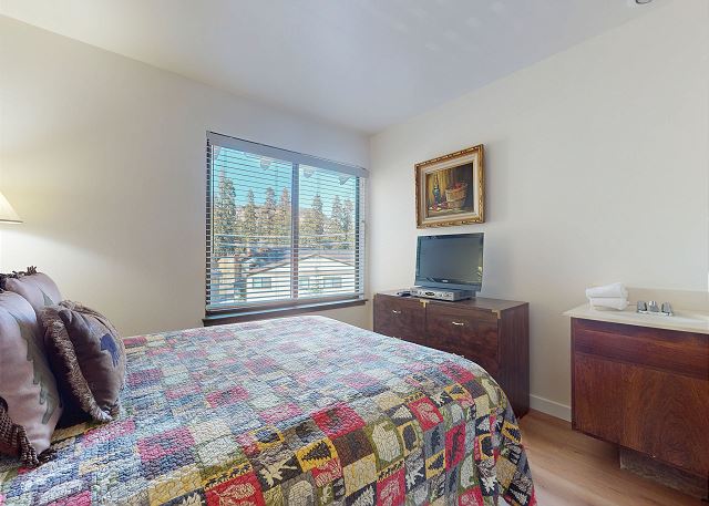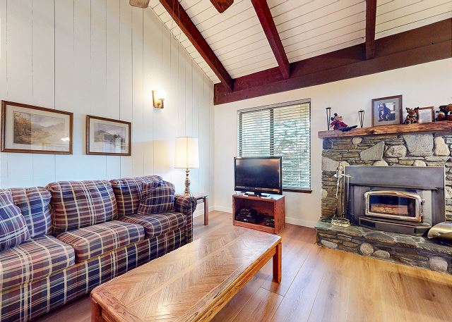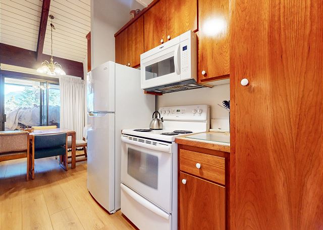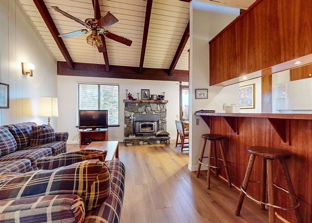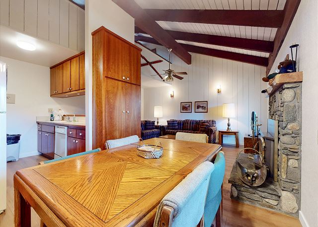 This pet-friendly, 1 bedroom + loft, 1 bathroom condo is a great value sleeping up to 8 people. It is centrally located close to the lakes in Mammoth. The kitchen is fully stocked with everything you need, just like home. The living area features a flat screen TV with DVD player and premium HBO channels, wood-burning fireplace, and free WiFi.
