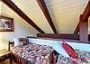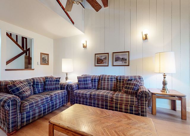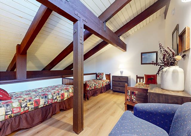 The master bedroom has a queen bed with en-suite vanity and shared hall bathroom. The loft features a perfect space for singles or kids with 4 twin beds. The living room also has a sleeper sofa for extra guests. All guests receive complimentary full access to Snowcreek Athletic Club to enjoy facilities including indoor heated pool, steam/sauna, full fitness facility, yoga, pilates and cycle studio and more.