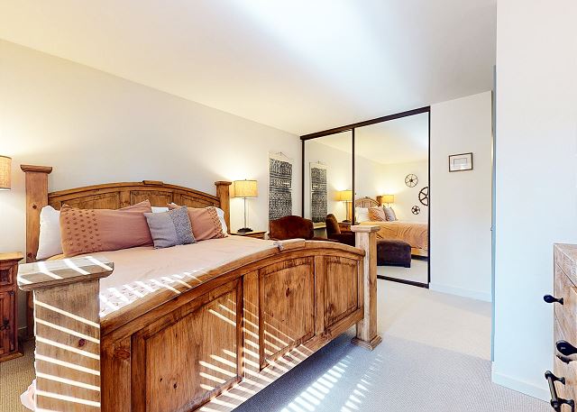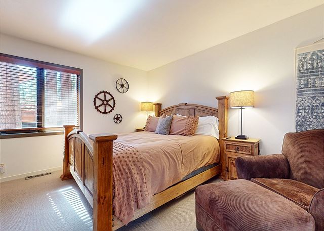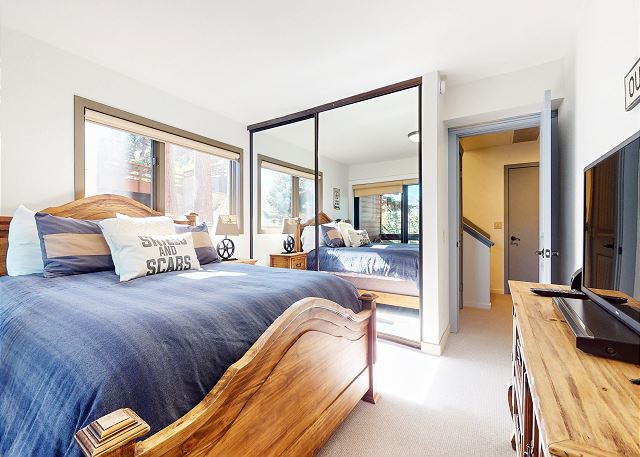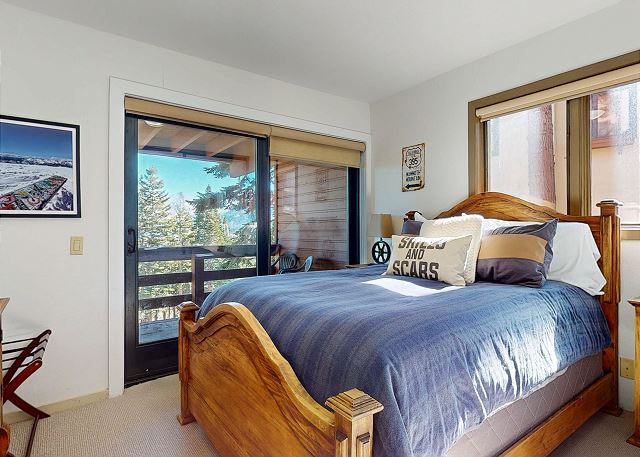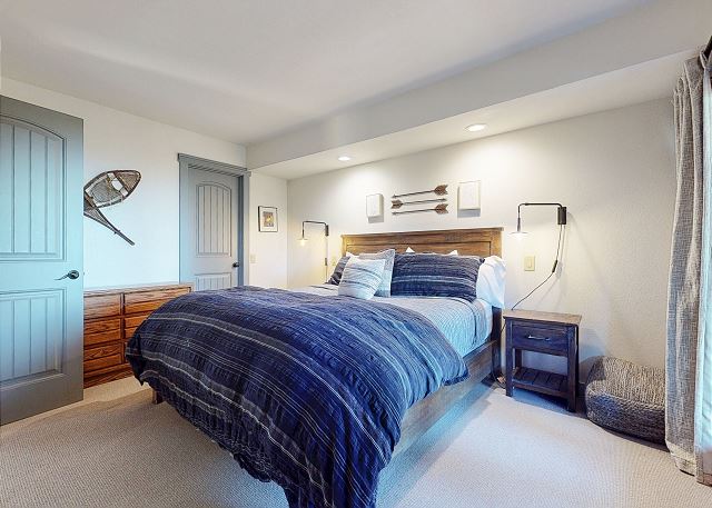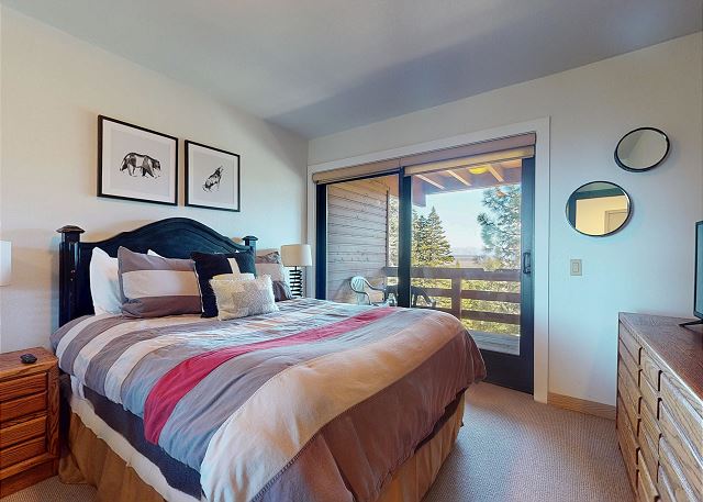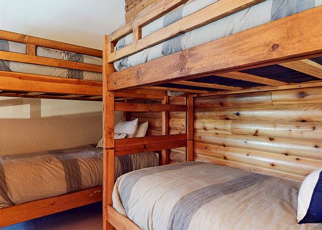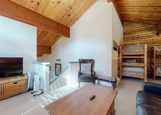 This newly refurnished and upgraded 4 bedroom + loft, 4 bathroom townhome is perfect for your large group and is just a stones throw to the slopes at Eagle Lodge. You can even bring Fido along as it is also pet-friendly! The master bedroom features a King bed with a TV and DVD player. Has a private en-suite bathroom and private deck with breathtaking views. The second master bedroom features a King bed with TV, plus accessibility to a twin roll away bed and a 'pack n play', perfect for littles, and a private en-suite bathroom. The third bedroom features a Queen bed with TV and DVD player. The fourth bedroom features a Queen bed and TV. Both lower level bedrooms have access to a shared balcony and a full bathroom. The loft has two sets of bunk beds both with 2 twins, for a total of 4 twins, and a lounge area with sofa sleeper couch, flatscreen Smart TV with Roku and games.