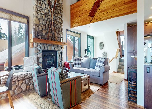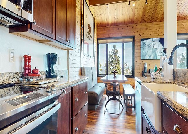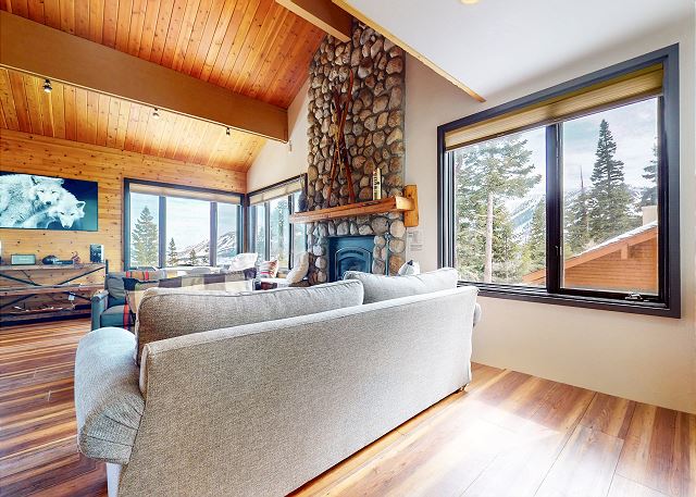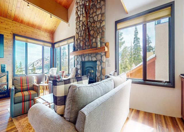 This beautiful 4 bedroom plus loft, 4 bathroom renovated townhome sleeps 14 and is steps from the slopes at Eagle Lodge. The home features amazing views of the Sherwins right from the couch of the living room. Relax by the gas fireplace or private jacuzzi located on the back deck, cook a meal in the fully equipped kitchen with dining area with seating for 8, and an additional 3 at the bar. The kitchen features all granite countertops, stainless steel appliances and a farmhouse style sink. Or be the grill master with the BBQ gas grill on the back deck. The spacious living room offers a secondary dining or game table area, along with two comfortable couches to cozy up around the fireplace and watch the large flatscreen picture TV. The loft is a perfect spot for the kids to hang out and watch TV with their own private space. The townhome features two primary suites. The first primary bedroom features a King bed, flat screen TV, attached remodeled bathroom with shower and separate tub, and private access to the outdoor jacuzzi. The second master bedroom has a King bed, flatscreen TV and private bathroom (also recently updated) with tub/shower combo. On the middle level is private laundry with a washer and dryer so you have all the conveniences of home. The third bedroom has a Queen bed and flat screen TV, while the fourth bedroom features a bunk bed with a Twin on top and Double on the bottom and an additional Twin bed (for a total of 2 Twins and 1 Double), perfect for the kids! There is a 4th updated full bathroom on the lower level with shower/bathtub combo. The loft area features a Queen size daybed which also doubles as an additional seating area for relaxing, a Twin bed with a trundle for a total of 2 Twins and flatscreen TV. A full bathroom with shower located at the entry level. All guests receive complimentary full access to Snowcreek Athletic Club to enjoy facilities including indoor heated pool, steam/sauna, full fitness facility, yoga, pilates and cycle studio and more. This townhome sleeps a maximum of 14 people, 2 outdoor parking spaces in the driveway, and is 4 levels inside and no steps to enter the entrance level. This home is non-smoking and allows one pet upon approval in Summer only. Guests will be provided two parking passes. If more parking is required than what is allotted, feel free to call our office for alternative options. No smoking and no pets permitted. Our calendar is updated in real time. (Property Certification #: TOML-CPAN-13463) Unit Code = BRT05