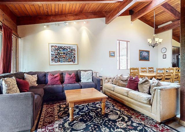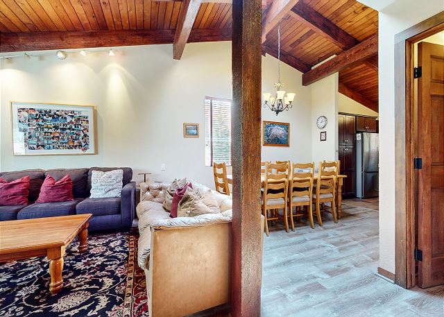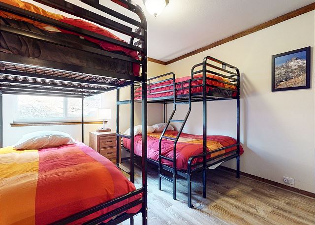 Mammoth Estates is located in the heart of it all, walking distance to the Village at Mammoth, in a quaint and quiet forest mountain setting. This four-bedroom, three-bath property features a spacious remodeled condo with granite countertops, vaulted ceilings, and a washer/ dryer. This unit sleeps a maximum of 10 people, with a king in the master bedroom, a queen in the second bedroom, a queen in the third bedroom and two sets of bunk beds in the fourth bedroom. is non-smoking and pets are permitted. Short walk to the year round amenities Mammoth Estates has to offer such as the Game Room, Jacuzzi and Sauna. Take a plunge in the beautiful pool in hot summer months or just soak in the sun surrounded by beautiful landscape. All guests receive complimentary full access to Snowcreek Athletic Club to enjoy facilities including indoor heated pool, steam/sauna, full fitness facility, yoga, pilates and cycle studio and more. Guests will be provided two parking passes. If more parking is required than what is allotted, feel free to call our office for alternative options. Our calendar is updated in real time. (Property Certification #: TOML-CPAN-13655) Unit Code = MES229