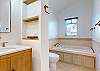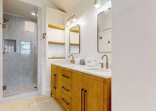 A two-car heated garage with a 7’4” clearance offers the ultimate convenience on those stormy days and includes an outdoor driveway large enough for 1 additional vehicle (in Summer only, due to snow storage and roof shedding). The garage includes newly-installed Gravity Grabbers to safely hold skis and snowboards. The home comes with a portable AC unit to help keep those Summer days cooler.