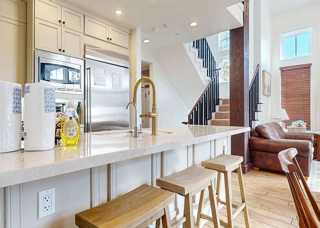 Guests receive complimentary full access to Snowcreek Athletic Club. Snowcreek facility includes an indoor heated pool, outdoor pool, sauna, fitness equipment, yoga, Pilates, cycle studio, tennis courts, indoor basketball gym, plus more. Green and yellow shuttle stop in front of the community entrance. DirecTV, HBO, Plex, Disney+, Netflix channels included with all the latest movies and tv shows + WIFI access available. This unit is not pet friendly and sleeps a maximum of 12. This is a 3-story townhouse with 3 levels inside, 1 step at the front entrance, there are no sleeping accommodations on the main entry level. Please Note: This property makes use of surveillance equipment outside the home. Camera is located on the front of the garage monitoring the driveway. (Certified Property #: TOML-CPAN-13362) Unit Code = JCR26.
