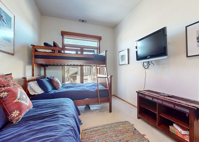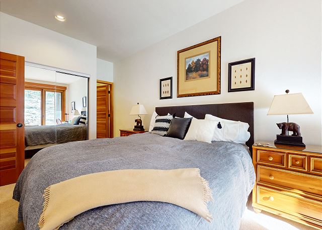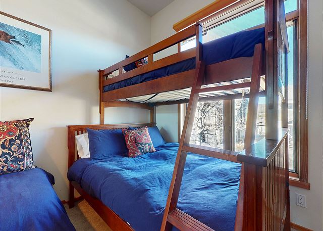 This spacious, light and bright 4 bedroom, 3 bathroom home boasts one of the best views in Mammoth. Gaze upon the Sherwin Mountains and Mammoth Rock while you relax and spread out in this spacious home featuring over 2,500 sq ft of space. There is plenty of seating for everyone upstairs and the living room features a flat screen TV with DVD player, cozy gas fireplace, and two separate dining areas. Cook meals with friends and family in the full deluxe kitchen. Enjoy the comforts of home with in unit washer and dryer, free WiFi, private 2-car garage, and gas grill on the back deck...you can even bring Fido as this home is pet-friendly! The master bedroom has an incredible view with private deck to enjoy your morning coffee and offers guests a King size bed, flat screen TV with DVD player, private gas fireplace and en-suite bathroom with double vanity, and even a small desk if you need to work or school remotely while on vacation. The second bedroom downstairs has a King size bed with an en-suite and private deck, and a dressing table that could also be used as a separate work station. The third bedroom on the upstairs level features a Queen bed and Mammoth Mountain facing views. The kids will love having their own bunk room with a eurostyle bunk bed with a Twin on the top, Double on the bottom, plus an additional Twin bed, and flatscreen TV with DVD player. The third full bathroom with separate vanity and dual sinks is on the top level of the home. This home is perfect for a large family or multiple families and even comes with baby gate and some kids toys. With walking trails directly from your back deck, and snow fields for the kids to play in while you watch from beside the cosy fireplace, this is a Mountain retreat made for making memories. No smoking, pets on a request basis only. All guests receive complimentary full access to Snowcreek Athletic Club to enjoy facilities including indoor heated pool, steam/sauna, full fitness facility, yoga, pilates and cycle studio and more. Guests will be provided two parking passes. If more parking is required than what is allotted, feel free to call our office for alternative options. Our calendar is updated in real time. (Property Certification #: TOML-CPAN-13913) Unit Code = SNC0760