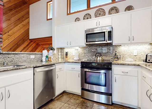 Blender, Coffee Maker, Cookware, Full Kitchen, Ice Maker, Microwave, Refrigerator, Toaster, Dishwasher, Freezer, Toaster Oven, Electric Range/Oven, Keurig (pods not included), Hand Mixer, Tea Kettle, Drip Coffee Maker