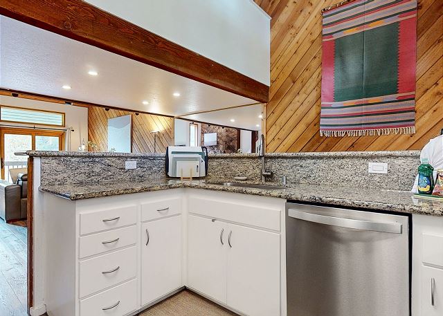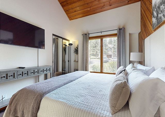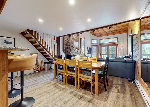 Introducing this spacious 3 bedroom + loft, 2 bathroom home located next to the Snowcreek meadow with spectacular mountain views and the creek just outside the door. This quiet, peaceful location allows for that Mountain getaway where you are emersed in a Winter wonderland. And you can bring Fido and let them enjoy the great outdoors too, as this home allows one pet to join in on the adventure! The open plan living room, dining area and kitchen offers a great gathering space for the whole crew to be together. Cozy up in the living area with pellet stove, large flatcreen Smart TV with Cable, and enjoy those incredible expansive views. The updated kitchen with granite counter tops and stainless steel appliances, comes completely stocked with all the kitchenware of home, allowing you to prepare family meals. There is plenty of seating for your group in the dining area that seats 6, with 2 additional bar stools at the kitchen breakfast bar. There is a gas grill located on the upper balcony, private washer/dryer makes it a home away from home, and complimentary WiFi. Don't miss some of the best views and most relaxed, private settings in Mammoth, with the creek in your backyard! In the primary bedroom, wake up to that mountain setting and relax in your King bed, with flatscreen TV, or step out off the private deck to the meadow or enjoy your morning coffee. The secondary master suite also offers a King bed and flatscreen TV, with private attached en-suite bathroom with shower/tub combo. The third bedroom features a King bed, flatscreen TV, and access to the shared hall bath with tub/shower combo. The laundry area with private washer / dryer is located on this lower level. The open loft on the 3rd story is perfect for the younger visitors featuring 2 Twin beds (note no closet). The home also comes with a secure external equipment storage closet at the entrance. Snowcreek offers luxurious, grassy knolls, spas, saunas, and a quiet neighborhood. Enjoy a hike in the meadow or a cross country ski trek while taking in nature's majesty. This is a spacious, beautiful year-round choice, that your furry friend will also be in love with. All guests receive complimentary full access to Snowcreek Athletic Club to enjoy facilities including indoor heated pool, steam/sauna, full fitness facility, yoga, pilates and cycle studio and more. This condo sleeps a maximum of 8 people and comes with 2 outdoor parking spaces, it is pet friendly but only allows ONE pet. Guests will be provided two parking permits. If more parking is required than what is allotted, feel free to call our office for alternative options. There are 3 stairs to the unit, 3 levels inside, and no smoking is permitted. Our calendar is updated in real time. Please Note: This property makes use of surveillance equipment outside the home. Camera is located at the front of the home monitoring the front door. (Property Certification #: TOML-CPAN-14056) Unit Code = SNC0452