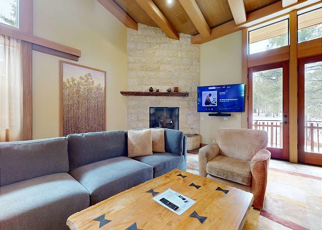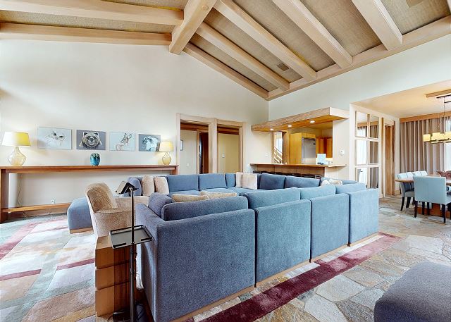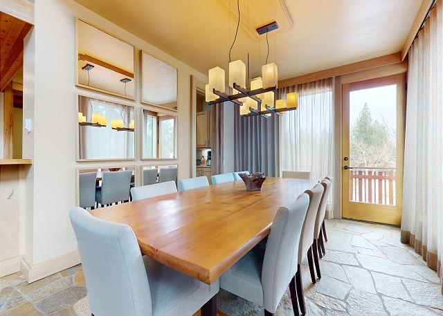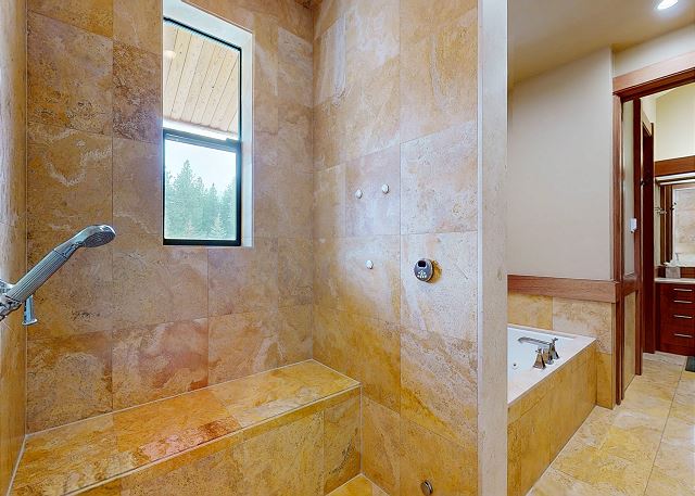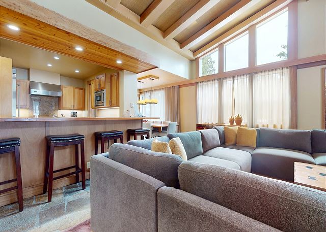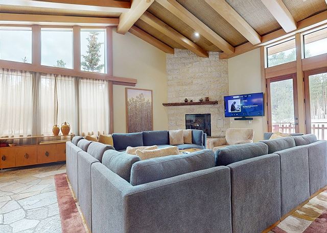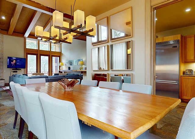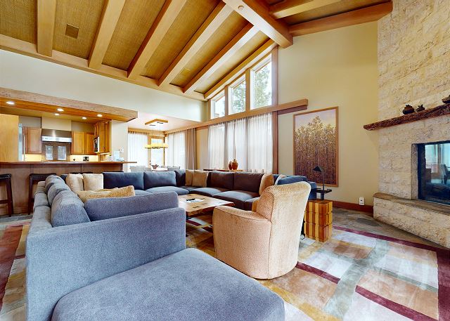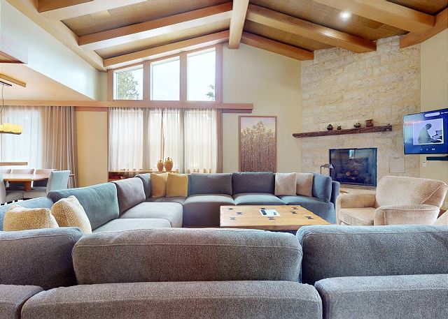 Introducing this one of a kind luxury 5000 sq ft residence in the sought after gated community of Obsidian. Overlooking the Sierra Star Golf Course and minutes from the ski lifts at Eagle Lodge, this expansive home offers 4 large bedrooms, all with private en-suite bathroom plus an additional 2 powder rooms. This mountain modern home is perfect for your family retreat, with a private hot tub, movie theater room, private 2 car garage and all the conveniences desired. Featuring radiant heated stone flooring throughout, custom wood accents and floor to ceiling windows for the ultimate experience of contemporary mountain living with premium amenities. Expansive living spaces inside, but also enjoy the outdoors on the covered and outdoor terraces on all levels and take in the fairway views. The open plan living area with large gas fireplace, and comfortable sectional becomes the great room of the home for family gatherings around the fireplace, and a flatscreen Smart TV. The fully equipped gourmet kitchen with a 6 burner stove, fully stocked with all kitchen amenities you will need to prepare meals and formal dining area seating 8, allows you to host all of the family. Enjoy al fresco living with the fully covered entertaining terrace on this middle level offering a built-in gas grill, dining seating for 6, private hot tub and additional seating outdoors on the balcony. A very desirable large primary master suite on the dedicated third level of the home offers privacy, space and an area to work remotely. Set apart from the rest of the home, you won't want to leave this exquisite master suite featuring King bed, lounge area with gas fireplace and large flat screen TV. A private en-suite bathroom with walk-in steam shower, whirlpool tub, double vanity, and walk in closet. The private terrace offers outdoor seating and a spiral staircase leading down to the covered hot tub and middle level terrace. The second master bedroom on the middle level features a King bed with private en-suite with tub/shower combo. On the lower level of the home the third bedroom features a Queen bed, private en-suite bathroom with double vanity. The final fourth bedroom on the lower level is great for a family or for the kids featuring a full bed and bunk beds with 2 Twin beds, flatscreen TV and private en-suite full bathroom with tub/shower. The home offers a washer/dryer to get the chores done, and on the lower level features a kitchenette and small dining area for 4. This level leads out to the ground floor terrace with additional seating. And don't forget the decked out Movie Theater room featuring a 75" flat screen, you might never see the kids! This home has an approved occupancy of 10. The home has a 2 car private garage with space for an additional 2 vehicles in the driveway so you can avoid any hassle of shoveling out. If your vehicles cannot fit in either the garage or driveway, the property does have outdoor overflow parking. Obsidian is a gated community, located in the center of town, boasting total privacy and security to be away from the crowds, while still being close enough to downtown for shopping, dining and more. The club house has an indoor pool and spa (currently under construction and not available for access), exercise center, game room, built-in barbecue, patio area, and play area for kids. The club offers a regular shuttle service to the ski lifts available via the concierge desk, or there is also a shuttle stop located right outside the gates offering the convenience to get anywhere in town within minutes. Perfect for Summer or Winter, this is one residence that you will not want to pass up! All guests also receive complimentary full access to Snowcreek Athletic Club to enjoy facilities including indoor heated pool, steam/sauna, full fitness facility, yoga, pilates and cycle studio and more. Sorry no smoking or pets. Our calendar is updated in real time. This home is strictly NOT PET FRIENDLY, no pets are permitted on property. (Property Certification #: TOML-CPAN-13806) Unit Code = OBS001