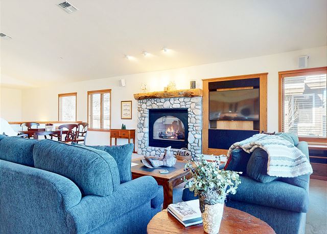 Satellite / Cable, Television, Smart TV, Clothes Dryer, Fireplace, Fitness Room / Equipment, Garage, Hair Dryer, Heating, Internet, Linens Provided, Living Room, Parking, Towels Provided, Washing Machine, Shampoo & conditioner, Desk, Wifi, Free Wifi, Office, Desk Chair, Coffee Maker, Dishes & Utensils, Dishwasher, Ice Maker, Kitchen, Microwave, Oven, Pantry Items, Refrigerator, Stove, Toaster, Dining Table, Kitchen Island, antiquing, bird watching, gambling casinos, horseback riding, paddle boating, photography, scenic drives, sight seeing, sledding, walking, fitness center, hospital, laundromat, Downtown, Golf Course Front, Golf Course View, Mountain View, Resort, River, Rural, Town, Village, Balcony, Deck / Patio, Golf, Kayak / Canoe, Outdoor Grill, Ski & Snowboard, Tennis, Hot Tub, basketball court, cycling, fishing, fly fishing, freshwater fishing, golf, hiking, hunting, ice skating, mountain biking, mountain climbing, mountaineering, skiing, swimming, tennis, water skiing, Dining Area, Adventure, Family, Romantic, Outdoor lighting, Deadbolt lock on entryway, Smoke detectors, Carbon monoxide detector, Fire extinguisher, Enhanced cleaning practices, Clean with disinfectant, No-contact check-in and check-out, High touch surfaces cleaned with disinfectant, Towels and bedding washed in water that's at least 60sC/140sF