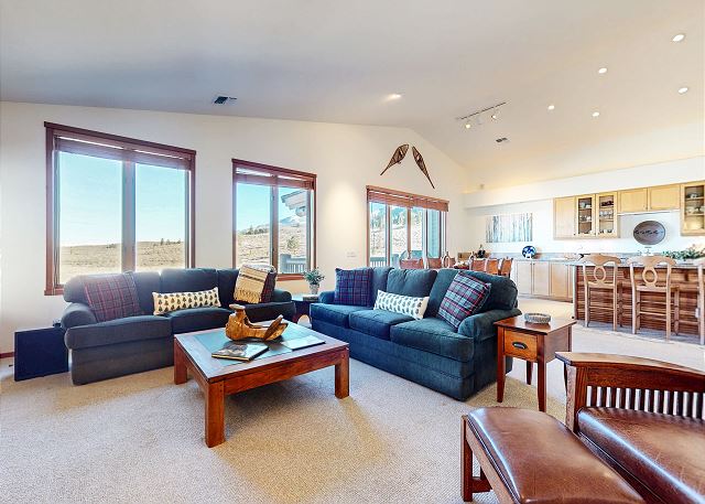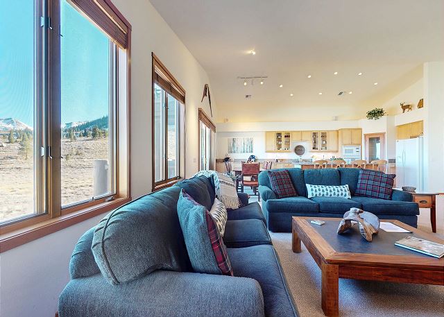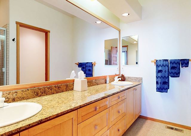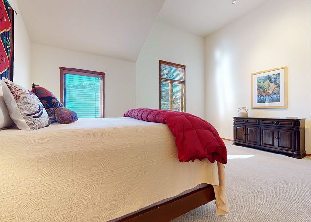 Discover luxury mountain living with this rare, spacious 4 bedroom and 4 bathroom corner home, with endless Mountain View’s and Scenery perfect for your dream retreat to Mammoth Lakes! With over 3,200 square feet you can relax and enjoy entertaining and look out to the breathtaking Sherwin Mountain range and snow fields on your back door step. The open floorplan welcomes you with vaulted ceiling in this great room with living space featuring a gas fireplace with stone surround, flatscreen smart TV, and plenty of seating. Floor to ceiling windows and balcony offer natural light to flood into the open plan kitchen. Enjoy family time with a dining area with seating for 8, and additional bar seating for four, while you prepare meals in the fully stocked kitchen with gas range, granite countertops, pantry and all the necessary appliances. The upper deck features a private gas grill where you can grill like a pro while enjoying those sweeping Mountain View’s. A private laundry room with washer and dryer gives all of the comforts of home. On the upper level of the home the primary suite upstairs boasts a King bed and private en-suite full bathroom with double vanity, soaking tub, walk-in shower and walk-in closet. There is a second master bedroom downstairs with King bed, en-suite bathroom with double vanity and walk-in shower, walk-in closet and access to the private downstairs deck where you can enjoy your morning coffee and those breathtaking views year-round. The third bedroom features a Queen bed and the fourth bedroom with two Twin beds. These two bedrooms share a hallway full bath on this lower level with tub/shower combo. An additional full bath with walk-in shower is on the upper level. Enjoy a home office with desk allowing you to set up your remote office. With a 2 car garage and entry mud room, you can store all your gear after a day of adventuring and have the convenience of private garage parking. The large driveway offers ample space for additional vehicles. This split-level corner townhome is perfect for your family gathering or Mountain retreat, including Fido, and provides enough space for the whole family to spread out. All guests receive complimentary full access to Snowcreek Athletic Club to enjoy facilities including indoor heated pool, steam/sauna, full fitness facility, yoga, pilates and cycle studio and more. This home sleeps a maximum of 8 people, is non-smoking and pets are permitted. The home has two levels inside, there are approx. 10 steps to the front door entry, the garage entrance is at ground level. Guests can park in the 2 car garage, and the driveway in front of the garage can accommodate 2-4 additional vehicles. If more parking is required than what is allotted, feel free to call our office for alternative off-site options. Our calendar is updated in real time. (Property Certification #: TOML-CPAN-16672) Unit Code = SNC0819