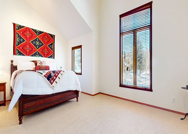 Discover luxury mountain living with this rare, spacious 4 bedroom and 4 bathroom corner home, with endless Mountain View’s and Scenery perfect for your dream retreat to Mammoth Lakes! With over 3,200 square feet you can relax and enjoy entertaining and look out to the breathtaking Sherwin Mountain range and snow fields on your back door step. The open floorplan welcomes you with vaulted ceiling in this great room with living space featuring a gas fireplace with stone surround, flatscreen smart TV, and plenty of seating. Floor to ceiling windows and balcony offer natural light to flood into the open plan kitchen. Enjoy family time with a dining area with seating for 8, and additional bar seating for four, while you prepare meals in the fully stocked kitchen with gas range, granite countertops, pantry and all the necessary appliances. The upper deck features a private gas grill where you can grill like a pro while enjoying those sweeping Mountain View’s. A private laundry room with washer and dryer gives all of the comforts of home. On the upper level of the home the primary suite upstairs boasts a King bed and private en-suite full bathroom with double vanity, soaking tub, walk-in shower and walk-in closet. There is a second master bedroom downstairs with King bed, en-suite bathroom with double vanity and walk-in shower, walk-in closet and access to the private downstairs deck where you can enjoy your morning coffee and those breathtaking views year-round. The third bedroom features a Queen bed and the fourth bedroom with two Twin bunk beds for a total of 4 Twins. These two bedrooms share a hallway full bath on this lower level with tub/shower combo. An additional full bath with walk-in shower is on the upper level. Enjoy an additional den/media room with large smart TV, and a sleeper sofa for additional sleeping accommodations. With a 2 car garage and entry mud room, you can store all your gear after a day of adventuring and have the convenience of private garage parking. The large driveway offers ample space for additional vehicles. This split-level corner townhome is perfect for your family gathering or Mountain retreat, including Fido, and provides enough space for the whole family to spread out. All guests receive complimentary full access to Snowcreek Athletic Club to enjoy facilities including indoor heated pool, steam/sauna, full fitness facility, yoga, pilates and cycle studio and more. This home sleeps a maximum of 12 people, is non-smoking and pets are permitted. The home has two levels inside, there are approx. 10 steps to the front door entry, the garage entrance is at ground level. Guests can park in the 2 car garage, and the driveway in front of the garage can accommodate 2-4 additional vehicles. If more parking is required than what is allotted, feel free to call our office for alternative off-site options. Our calendar is updated in real time. (Property Certification #: TOML-CPAN-16672) Unit Code = SNC0819