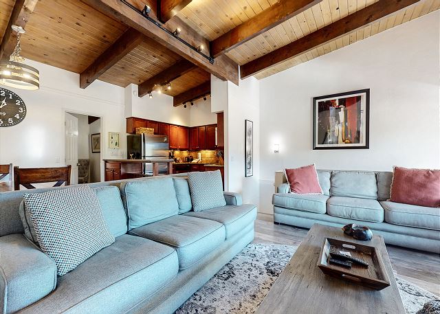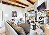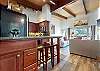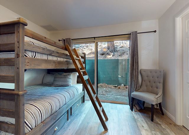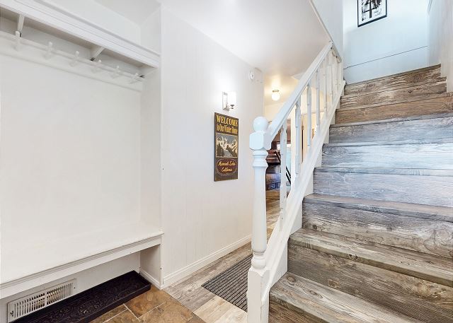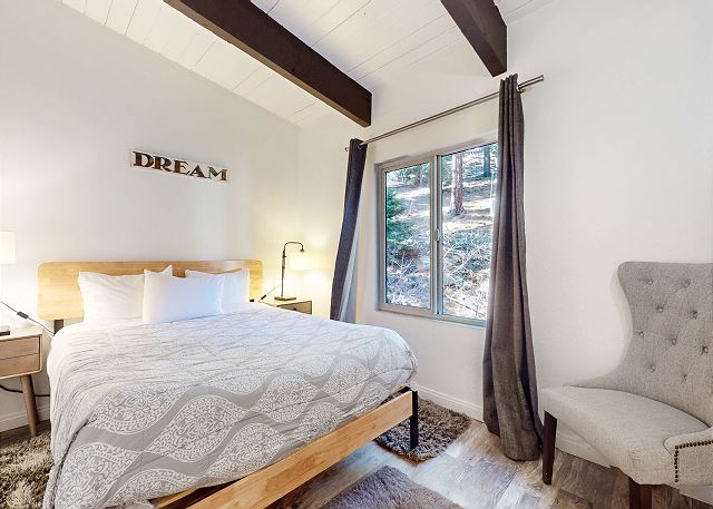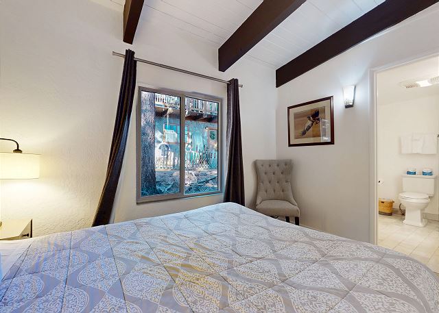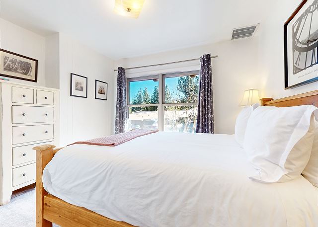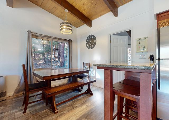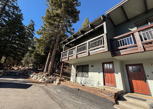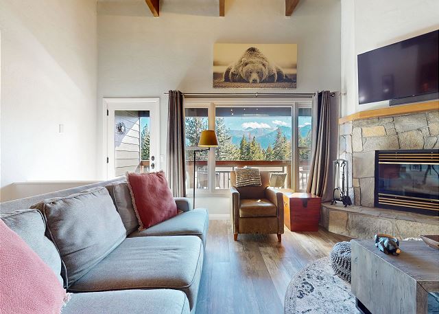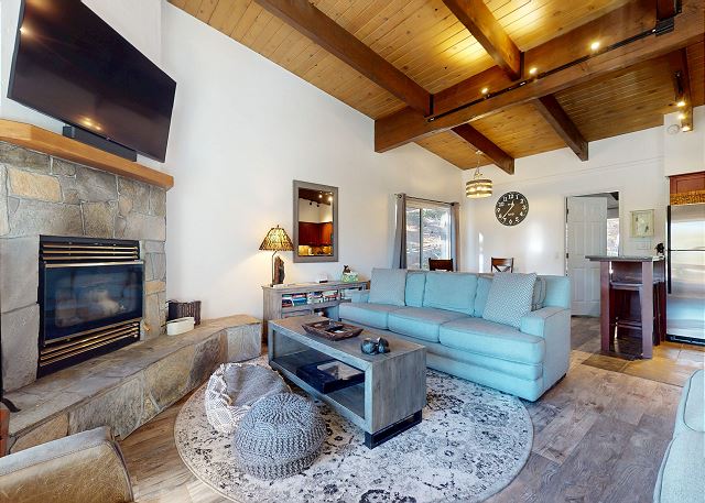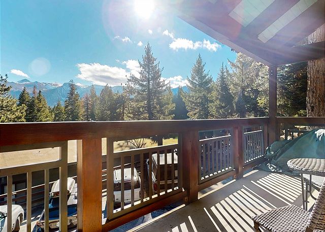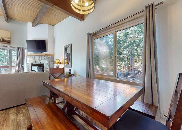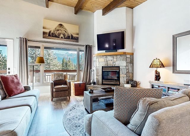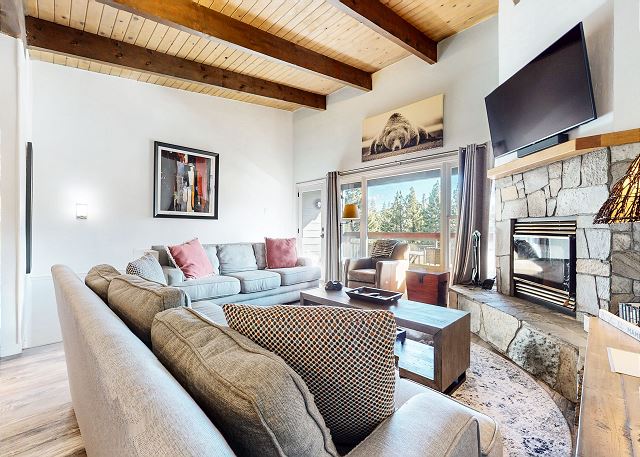 Escape for year-round adventure to this updated townhouse, nestled on beautiful wooded grounds in this quiet secluded community. This corner 3-bedroom, 2-bathroom escape sleeps 8 guests and is a short stroll from the Village at Mammoth where you have access to the Village Gondola, shops, dining options and more. In the Summer, explore the scenic trails, hit the golf greens, or enjoy a movie under the stars. With a cozy wood burning fireplace, mountain views, and access to a shared hot tub and sauna, this cabin offers an unforgettable mountain retreat. On the upper level is the main open plan living space with vaulted ceilings and lots of natural light, offering a gathering space for the whole family. The full kitchen makes cooking a breeze with high end stainless steel appliances, and is fully stocked with everything needed to prepare and enjoy family meals, including a dining space that seats 6 with additional kitchen bar seating. The living space offers comfortable seating, where you can wind down by the crackling wood-burning fireplace, or catch a movie on the large flatscreen smart TV. Or perhaps you want to sit back and take in the sweeping mountain views of the Sherwin mountain range from the private balcony. On this upper level is a primary suite with queen bed and attached private en-suite bathroom with walk-in shower. On the lower level are the additional two bedrooms, the second guest bedroom featuring a King bed, with access to the hallway full bathroom with tub/shower combo. The third and final bedroom features a Queen bed, plus double over double bunk beds, a smart TV with Apple TV and a desk space for remote working. For all the comforts of home, a private washer and dryer are in the hall closet. Enjoy the community hot tub and sauna, and recreation room with pool table, public BBQ (seasonal only), and on-site parking for 2 vehicles. All guests receive complimentary full access to Snowcreek Athletic Club to enjoy facilities including indoor heated pool, steam/sauna, full fitness facility, yoga, pilates and cycle studio and more. There are multiple mountain lodges nearby with Eagle Lodge a short drive, the Village Gondola 0.5-mile walking distance. The entrance has approx. 4 steps to enter, and the unit has two levels inside, this home sleeps a maximum of 8 occupancy. Our calendar is updated in real time. (Certified Property #: TOML-CPAN-15164) Unit Code = CHD08
