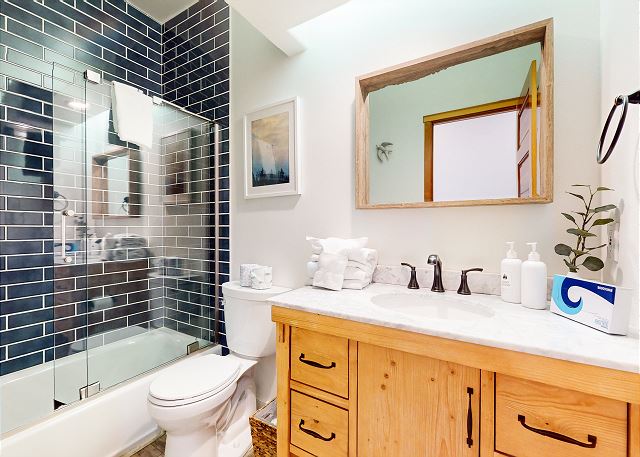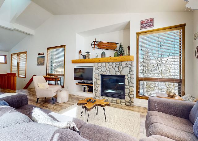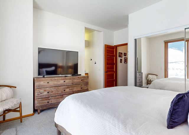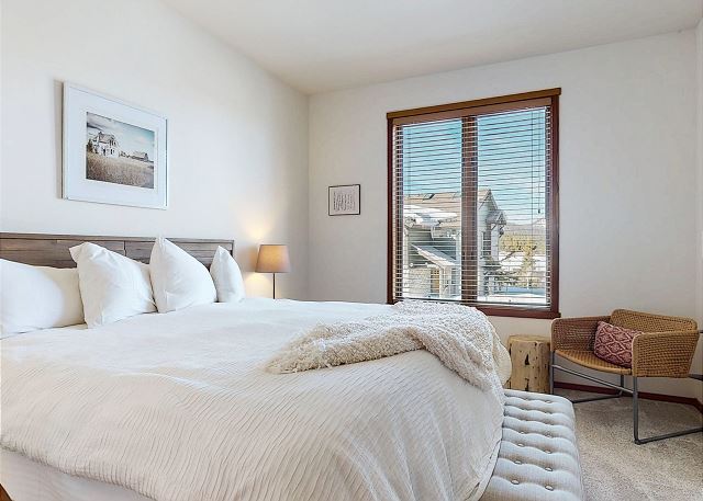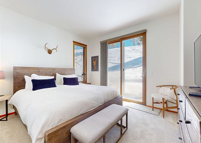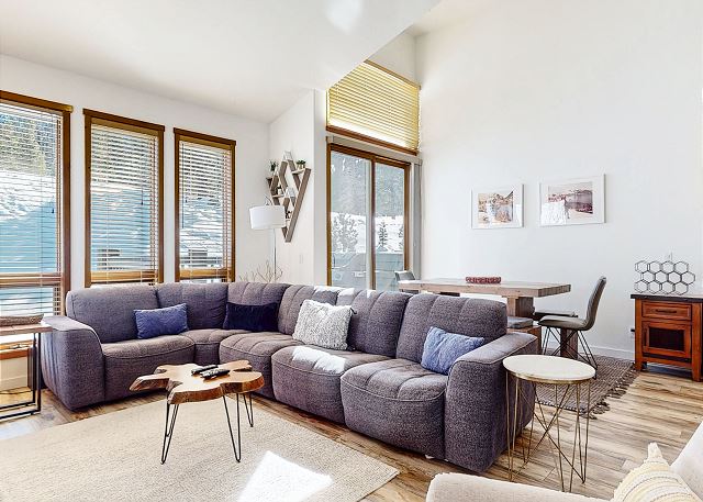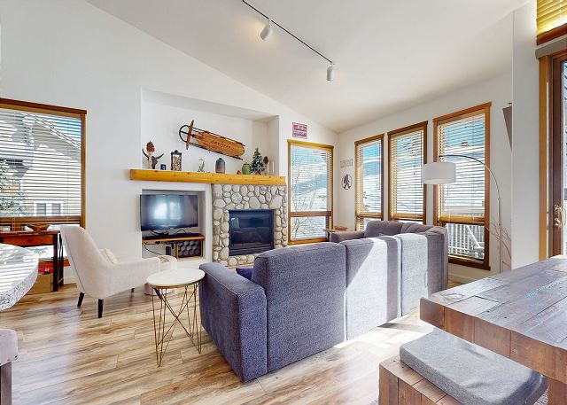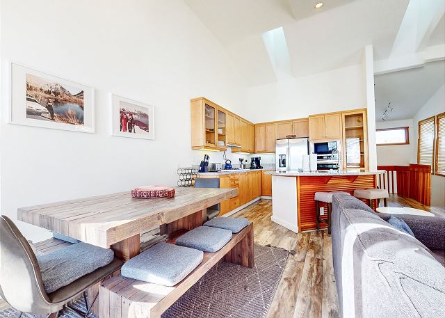 Introducing this elevated mountain modern townhome offering 3 bedrooms and 3 full bathrooms, over two levels with high ceilings and lots of natural light in this corned end unit. Located in the sought after community of Snowcreek Phase V, this location offers a peaceful setting, with mountain range views, and snowfields and trails accessible from your back porch. In the home you'll enjoy upgraded decor, vaulted ceilings, an open floor plan living and kitchen, a gas fireplace, private laundry room, a 1 car private garage and two outdoor decks to enjoy the outdoors. On the upper level is the living room with a smart TV with cable, fireplace and large comfortable sectional. A dining space for 8 with access to the upper private deck with BBQ for grilling, and additional bar seating at the kitchen island offers a social setting for family time. The kitchen with stone counters, equipped with stainless steel appliances is fully stocked to prepare family meals, plus a keurig coffee maker, rice cooker and more. The primary suite on this level features a King bed, 50" smart TV and a private en-suite bathroom with walk-in tiled shower and double vanity sinks. On the lower level, the second bedroom is also a primary master suite offering a King bed, 65" smart TV, and en-suite with walk-in tiled shower. The third bedroom features bunk beds with a Queen over Twin, plus Twin trundle, plus TV, and has a full shared hall bathroom with tub/shower combo. The home has a private laundry room with washer and dryer, and is equipped with smart thermostats and a built in humidifier system. This home offers a private 1-car garage with driveway parking for another vehicle. The snowcreek community has a community outdoor year-round hot tub to enjoy. All guests receive complimentary full access to Snowcreek Athletic Club to enjoy facilities including indoor heated pool, steam/sauna, full fitness facility, yoga, pilates and cycle studio and more. Guests will be provided one parking pass. If more parking is required than what is allotted, feel free to call our office for alternative options. This Mammoth condo sleeps a maximum of 8 people with no pets or smoking permitted. There are approx. 6 steps to the entry and two levels inside. Our calendar is updated in real time. (Property Certification #: TOML-CPAN-15178) Unit Code = SNC0777