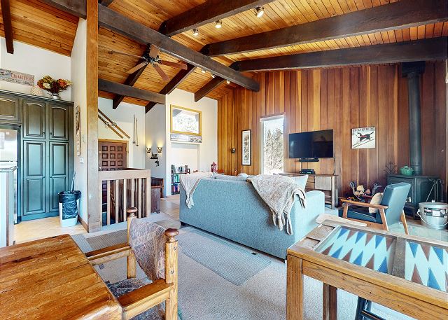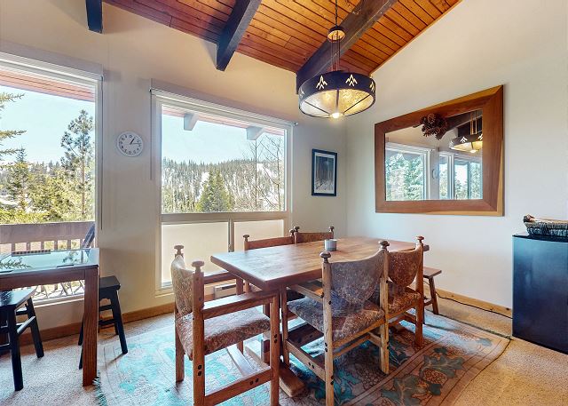 A premiere slopeside 4 bedroom and 2 bath large condo just a short walk to the lifts at Mammoth Mountain's Canyon Lodge. Perfect for a large family or plenty of friends looking for a spacious floorplan close to Canyon Lodge! It features a completely remodeled full kitchen with granite counter tops and stainless steel appliances, large dining room table, card table in the living room, vaulted ceilings, cozy fireplace and large deck with private BBQ. The master bedroom upstairs has a queen and private bathroom. The second bedroom downstairs has a king bed, TV, ample closet space and access to the second bathroom. The third bedroom downstairs has two sets of bunk beds each with two twins (for a total of 4 twin beds) and private washer and dryer. The fourth bedroom also downstairs has a euro style bunk bed with a full on the bottom and a twin on the top as well as a twin foldaway bed. The Mammoth West complex has an outdoor pool (summer only), a large Jacuzzi and sauna - great for relaxing after a long day on the slopes! All guests receive complimentary full access to Snowcreek Athletic Club to enjoy facilities including indoor heated pool, steam/sauna, full fitness facility, yoga, pilates and cycle studio and more. The home has 2 levels inside, is non-smoking and is not pet friendly. This unit has a MAXIMUM OCCUPANCY of 10 (TEN) PEOPLE and comes with two outdoor parking spaces. Guests will be provided two parking passes. If more parking is required than what is allotted, feel free to call our office for alternative options. Please Note: This property makes use of surveillance equipment outside of the home. A single camera is located at the front door entrance. Our calendar is updated in real time. No refunds will be provided for facilities or amenities not available. (Property Certification #: TOML-CPAN-13184) Unit Code = MWE140