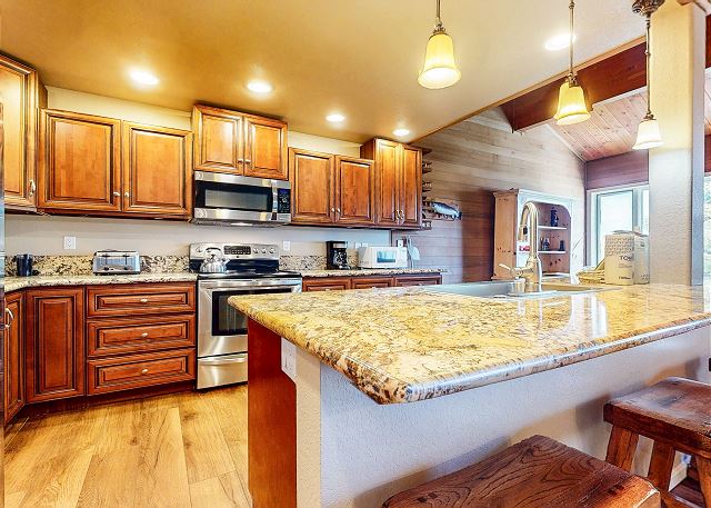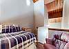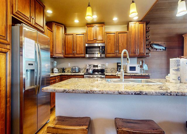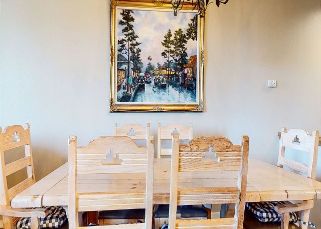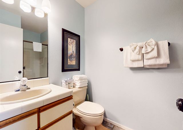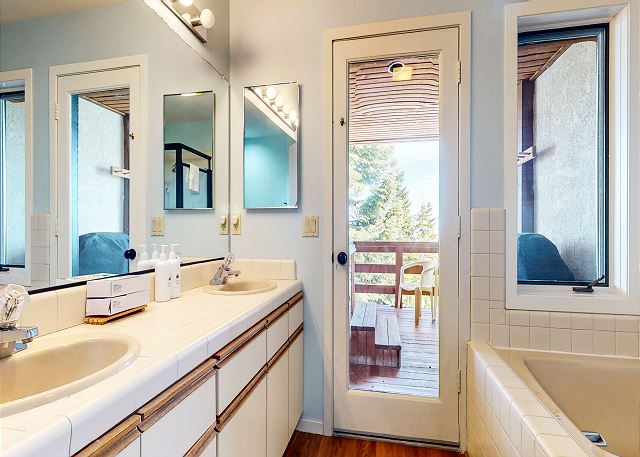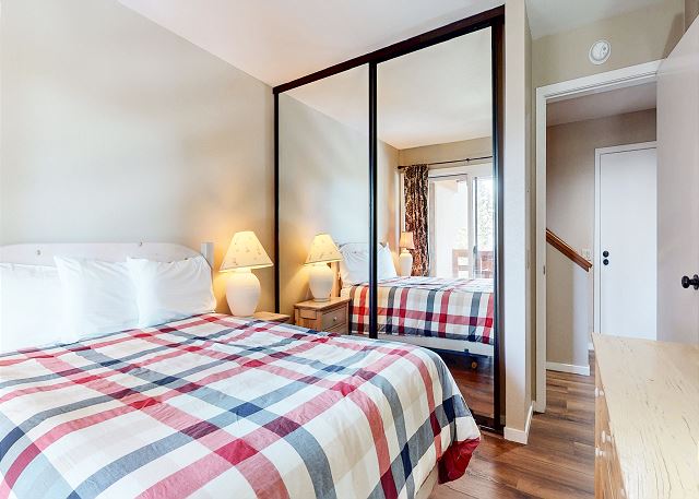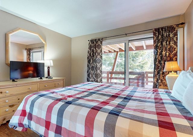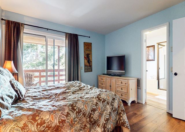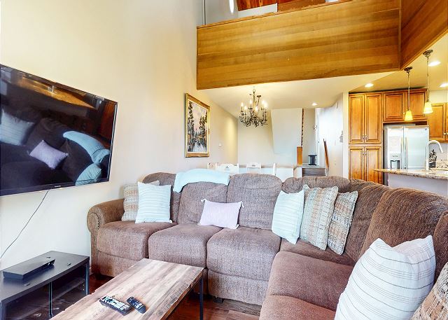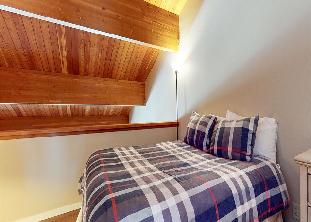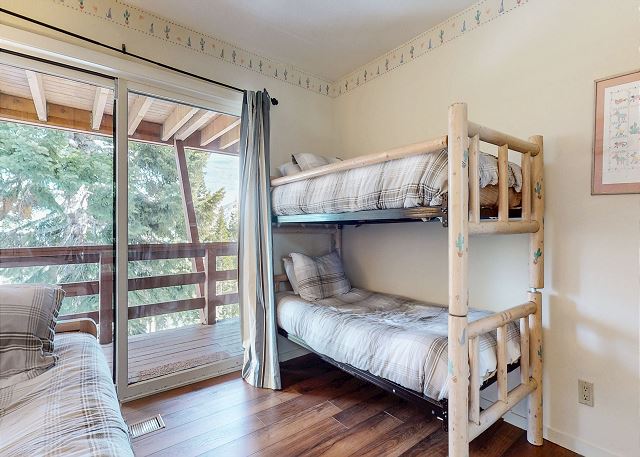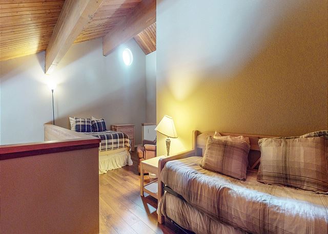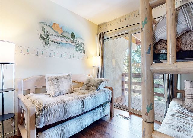 The master bedroom features a King bed and private bathroom. The second bedroom has a Queen bed. Third bedroom features a bunk with 2 Twins, as well as a Twin trundle for a total of 4 Twin beds in the third bedroom. The loft has a Twin trundle for a total of 2 Twin beds, a Queen and TV. All guests receive complimentary full access to Snowcreek Athletic Club to enjoy facilities including indoor heated pool, steam/sauna, full fitness facility, yoga, pilates and cycle studio and more.