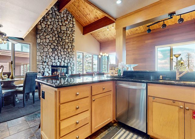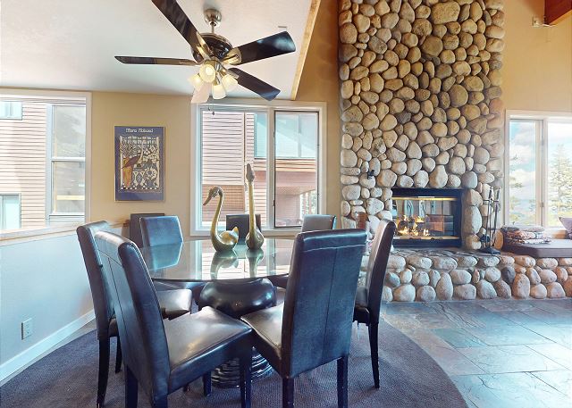 Remodeled kitchen and bathrooms make this spacious Bridges Townhouse a prime rental in Mammoth Lakes, California with 3 bedrooms plus loft and 4 bathrooms and a stones throw to the slopes! Enjoy beautiful mountain views from decks located off two bedrooms as well as from the picture windows in the contemporary living room/dining area with slate floors. Entertainment center features a 46-inch HDTV with TiVo with access to Netflix accounts and extra premium channels including HBO, Cinemax, STARZ and Showtime/The Movie Channel plus a Blu-Ray DVD player.